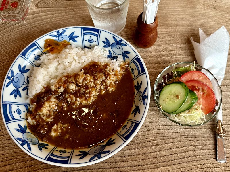 そんな中でいただいたのが、カレーとコーヒーのセット。こういったお店で通人は、夏でもホットコーヒーをいただくそうですが、先述のとおりこの日は暑かったこともあり、アイスコーヒーを。
