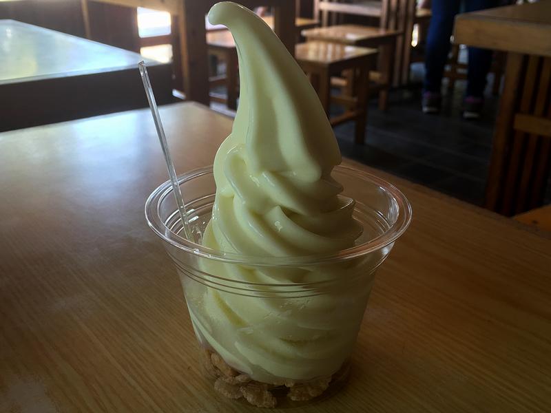 それで、道の駅というと個人的に連想するテナントが、地元食材の直売所やそれを使ったレストランの他、これまた地元食材を使ったアイスクリーム(ソフトクリーム・ジェラート)屋さん。この那須与一の郷にもちゃんとあるのですが、ここならでは、そしてちょっとインパクトのある素材が多い中、いただいたことがある中で個人的に好きなのが、今回もいただいたこちらの品。