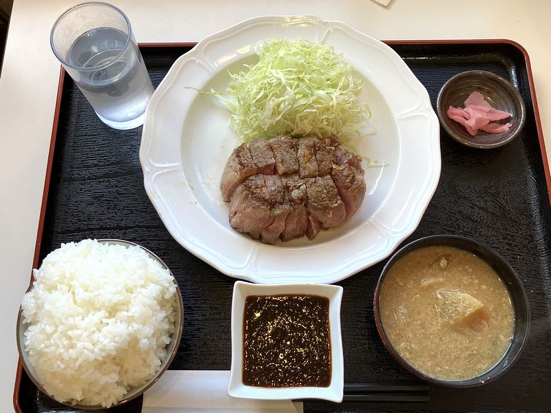 それで今回は、初めてということもあり、筆頭に書かれたソテー定食を、小(180g)、大(320g)、そして鉄板焼き(450g)とあるなか、大で注文。ライスも大盛り(無料)でお願い。ちなみに、他の人の注文を聞くとはなしに聞いていると、ソテーの他、生姜焼きも頼む人が多かった印象。