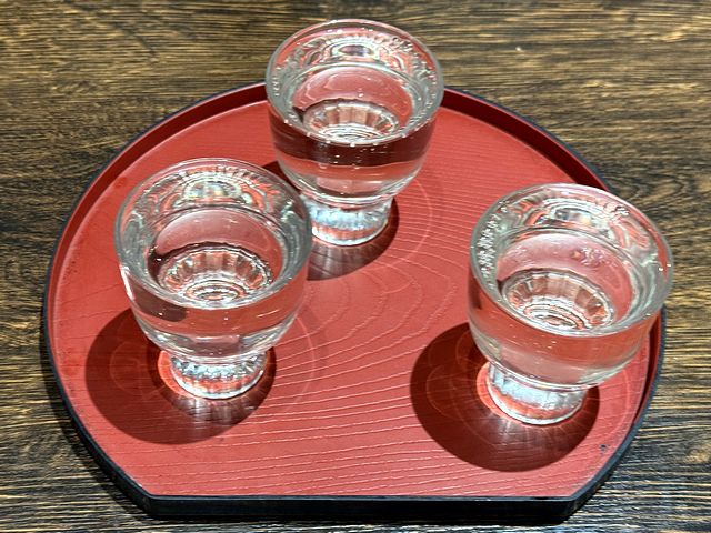 で、左から「田酒」特別純米酒、「白神」山廃純米酒、「陸奥八仙」特別純米酒が、0.5合づつとなっていますが、すっきりフルーティーだったり、日本酒的エッジが効いていたり、ドッシリとした旨味があるなど、3つの個性が楽しめるという組み合わせですね。