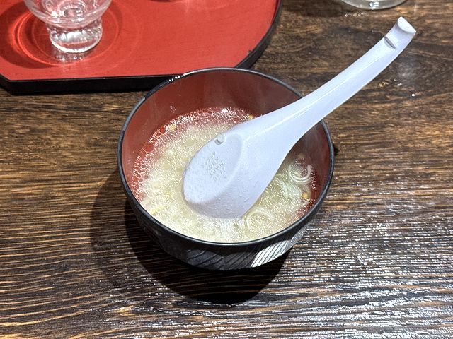 で、目の前で作っているところを見ていましたが、貝殻に移す前に、鍋でしっかりと練るように、卵と味噌に火を通していたのが印象的。お陰で口当たりが滑らかで、味噌と卵が口の中に広がります。ネギのアクセントも良いですね。