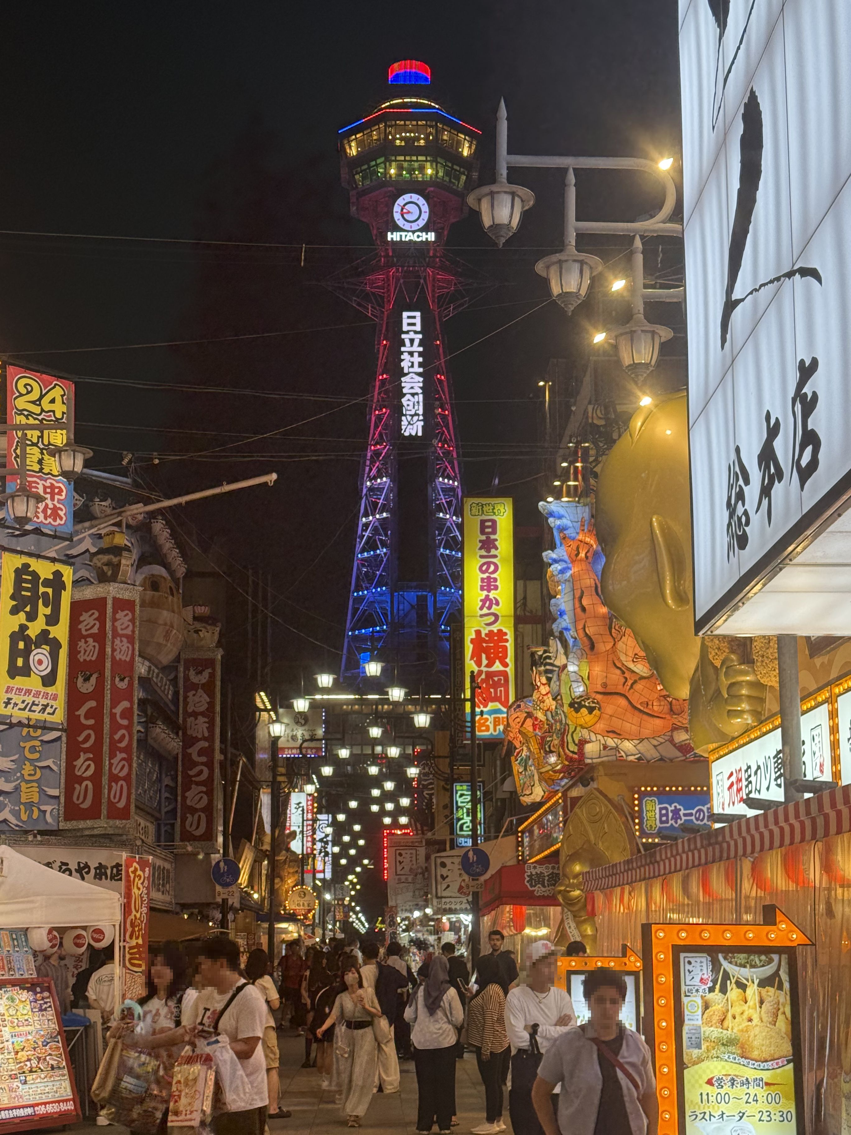だからせっかくなので、チェックイン後に何か当地らしいものを新世界をぶらつきましたが、まさしく「インバウンドっっ!!」という感じで、外国の人ばかり。これでも、某漫画家の流言のお陰で普段より人が少なかったというのだから驚きなのですが、そんな中をなんとか通天閣までたどり着き、そのたもとにあるこちらのお店に。