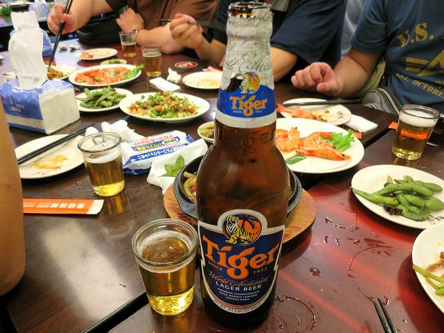 今回の口開けは、昨日もいただいたタイガービール(老虎啤酒)。やっぱり、スッキリ飲みやすいですね。