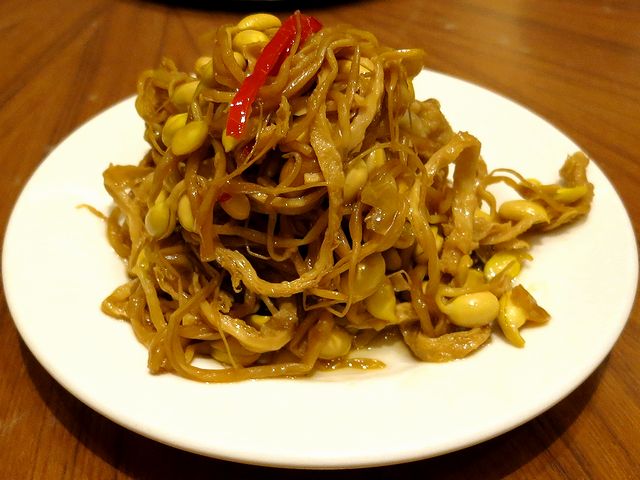 これらは、あらかじめテーブルに用意されていた和え物2種。お店の公式ウェブサイトによると(ちなみに、この記事内での料理の表記などは公式サイトに準じます。)小菜は干し豆腐と昆布、もやしなどを和えたもので、英語表記だとHouse Specialとなっていたのですが、だとしたら当店のスペシャリテ的な料理なんですかね。また寧式黄芽菜は豆もやしの和え物なのですが、寧式というのは上海式という意味らしいです。それで、両方とも味加減は丁度良く、これからの料理に大いに期待が持てますね。