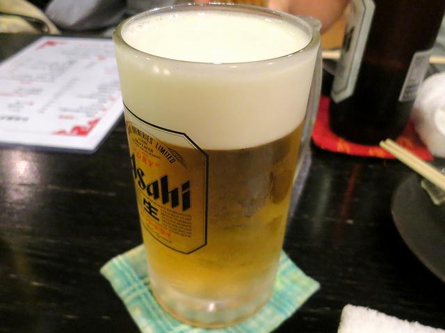 アサヒ生ビール・中ジョッキ(朝日生啤酒中杯) 150元+サービス料