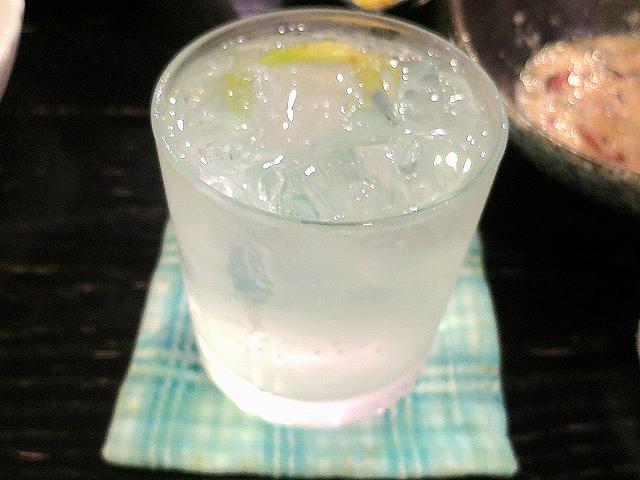 飲み物のお品書きには日本語の脇にカッコ書きで当地の言葉が書いてあるのですが(なのでこの記事もそれに倣っています)、ぱっと見、檸檬と燒酒はわかったものの、蘇打は一瞬考え込んでしまい、そのまま「ソーダ」と読めば良いことに気付くのにちょっとだけかかったというか。それで登場した時にちょっと驚いたのですが、まずグラスがロックグラスで、氷が細かいんですね。そして口を付けると、味的にはコンクのソーダ割りだと思うのですが、当地のレモンの香りが良かったです。