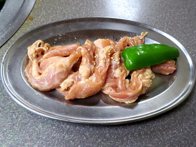 それで今回も色々いただいた(鶏皮~ライスが私の注文。ヘルシーセットが相方の注文。もっとも、肉類は適当にシェアしてますが。)のですが、こちらのお店は国産牛を使用する牛肉の部(今回だとハラミと、ヘルシーセット中のロース。)も美味しいものの、お店の名前にもなっているように(たしか、元々は養鶏業者さんがやっていたお店かと。)、鶏肉の部がどれも良い(今回だとヘルシーセット中の若チキンは、単品778円で頼んでも良いくらい旨いです。)です。で、中でも、お店には申し訳ないのですが、一番安い鶏皮(小)は個人的にお気に入りで、ほとんど毎回いただく品。ジックリと育て、表面カリカリにしていただくと酒のお供にたまらないですね。また珍しいネックは、しなっ強いクニっとした食感と若干クセのある滋味がハマります。あと、レバーとハツ、砂肝を盛り合わせた鶏モツ盛(774円)というのも良いのですが、今回は残念ながら品切れで、替わりに鳥レバーの単品をいただきました。そして、こちらで何気に良いのが、お米が美味しいこと。ちなみに、今回私がいただいたライスですが、同価格で味噌汁とお新香が付くセット定食というのもあって、今回のようにライス単品で注文した際は、店員さんに高確率でセットを奨められます。(今回は酒も飲む予定だったので、味噌汁とお新香は謹んで遠慮しましたが。)