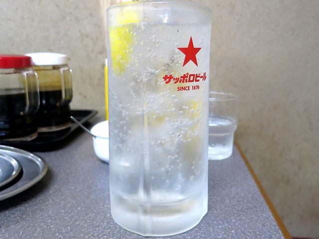 飲み物ですが、面白いのがサワー類(472円)とは別にチューハイという品があるところ。サワー類がシロップの甘味が効いているのに対し、チューハイは焼酎に炭酸、そしてカットレモンというスパルタンな構成で、アルコールもサワーより強めに感じますが、このキレが焼き肉類にとても合うというか。あと、相方はホットウーロン茶を注文したのですが、ジョッキで来るのが何とも豪快です。