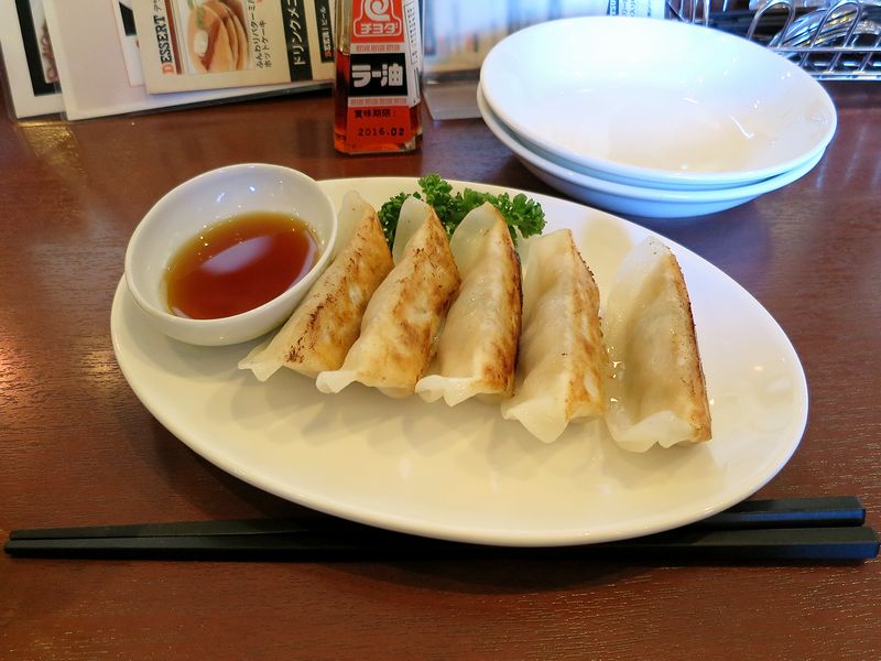生中をやっつけていると登場したのがメインの餃子。程よい焼き加減で、皮の焦げ目はカリサクっ、中はジューシーと、まさしく王道。今時の言葉で言えば、「普通に美味しい」です。っていうか、餃子って味の表現に困るんですよね。皮が厚いか薄いかとか、挽肉と野菜の割合とか、ニンニクの効き具合とか差があることはあるのですが、焼き加減さえちゃんとしていれば、大抵美味しくいただけちゃうんで。特にこちらのお店の餃子のように、これらの3つが中庸な場合、ホント、難しいです。ともあれ、美味しいのは間違いが無く、思わず生中を追加してしまいました。