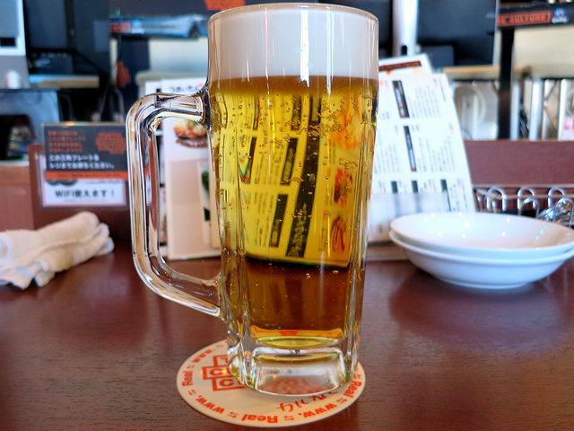 こちらは、一緒にいただいたもの。やはり餃子と言えばビールだろうということで頼みましたが、間違いのない組み合わせでした。