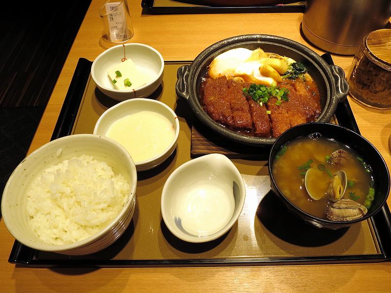 味噌かつ煮定食 760円 + 貝汁変更 130円 + とろろ 150円