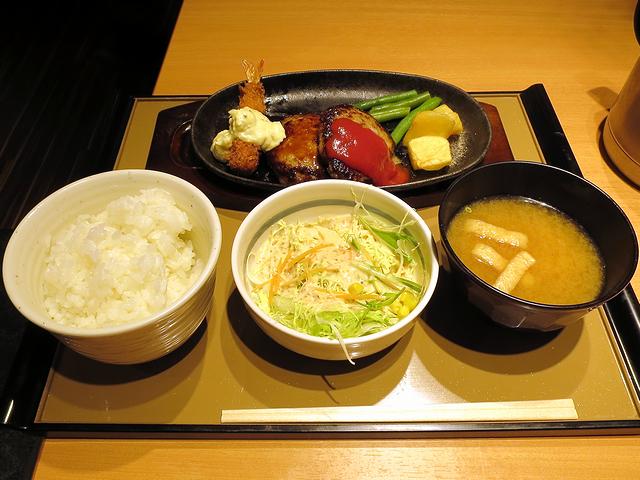 こちらは、同行者がいただいたもの。ハンバーグが2つに海老フライって、子供だったら確実にテンション上がる組み合わせですが、大人の私も「こっちも良いな」と思ってしまいました。