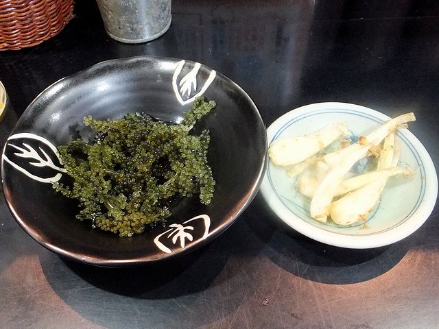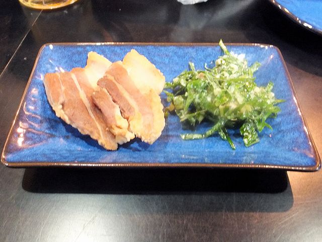 まずは軽くジャブ的にこちらを。生姜醤油っぽいタレでいただくのですが、クセは全く無く、お肉の新鮮さが良く判ります。お酒のアテにぴったりですね。