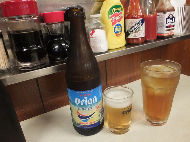オリオンビール(中ビン) 450円 と ウーロン茶 250円