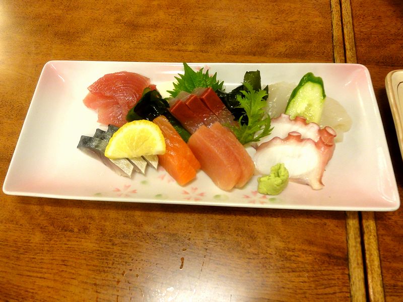 そういえば先ほどのお店で刺身いただいてなかったなぁ、などと思ってお願いしたのですが、これがまた驚いたというか。一見、ごく普通の盛り合わせなのですが、どの魚もすこぶる付きで美味でした。また、まろやかでコクのある刺身醤油も良かったです。