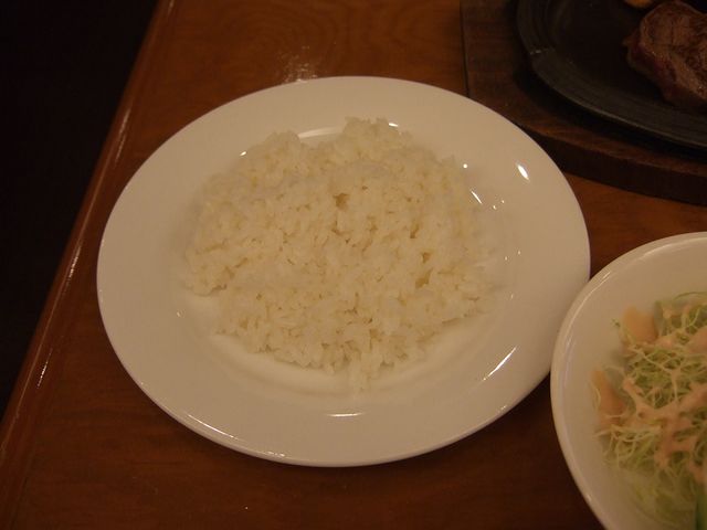 で、そんな由緒あるお店でいただいたのは、こちらの看板メニューであるジョウトウステーキのLサイズ(250g)を、焼き加減ミディアムレアで。ちなみに「ジョウトウ」とは「上等」のことで、上質な物を求める米兵達が沖縄に来るとすぐに覚えて使っていた言葉だそうで、そこから店主さんが、米兵など外人客にも解りやすいように、と名付けたとのことです。して、そのお肉ですが、流石に「上等」だけあって、赤身の柔らかいお肉がもう。脂がトロトロの和牛大好きな方には物足りないとは思いますが、個人的には、柔らかいけど適度な噛み応えと共に染み出てくる肉汁がたまりません。そのお肉を、豊富に揃った卓上の調味料で適宜調味していただくのですが、中でも印象的だったのは、沖縄のステーキと言えば付きものらしいA1ソース。最初は酸味が強く馴染みのない味に戸惑い、また全体的にソース自体の味が薄く感じられるのですが、食べ進むうちに、不思議ともう一口このソースで行ってみようという気になってきました。(ですが、老婆心ながら、食べ慣れない方はいきなりドバッと掛けずに、一口分づつ試すほうが無難だとは思いますが。)それを、セットのサラダや、どことなく赤い缶を連想させるアメリカン?な味のスープ、そして沖縄らしい感じの白米(ちなみにパンも選べます)と共にいただけば、これぞ、創業当時のアメリカ占領下から続く味なのではないかなぁ、なんて思ったりして。
