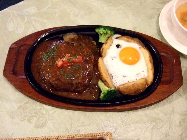 こちらは、同行者のいただいたもの。っていうか、貰うの前提で300gのを注文させてしまいました…。で、そのお味ですが、こちらは、ナイフを入れるとあふれ出る肉汁がもの凄くジューシー。ソースも凝っていて、こちらも美味しいですね。