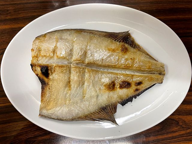 それでこちらのは、一夜干し?を焼いたもの。カレイの仲間特有の、どこか藁っぽい風味は干物にしても健在ですが、それも個性の範疇で、身はホクホクと骨離れも良く、味もしっかり。