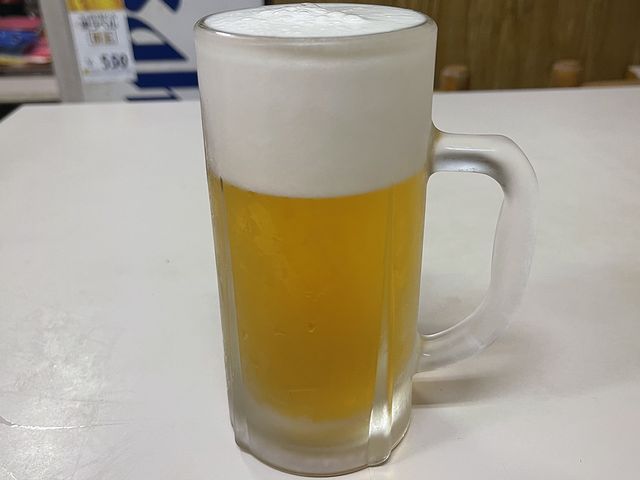 この日は暑かったので、とりあえず生ビールを。銘柄は訊くのを忘れましたが、サッポロ(黒ラベル)のよう。