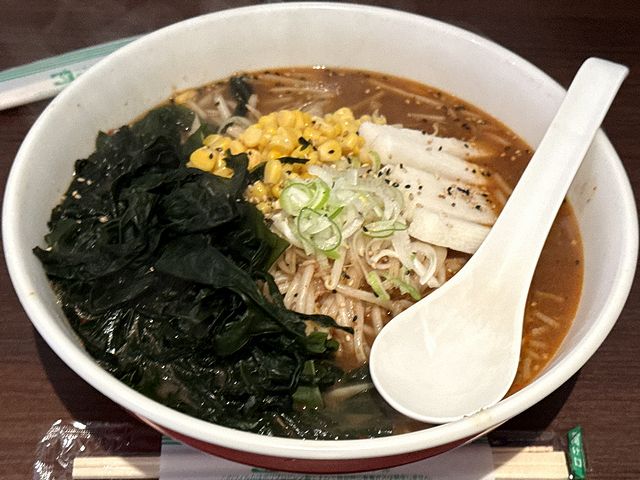そして具は、スープと馴染んだ挽肉とモヤシの他、コーン、たっぷりのワカメ、そして雷ラーメンには欠かせない、生の山芋。