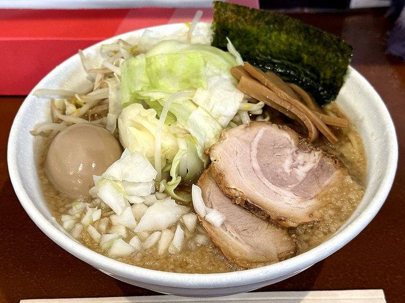それで目論見通り、すんなり駐車からすんなり入店してすんなり食券購入。すんなりし過ぎて、つい、余計に半ライスの食券まで買ってしまいましたが、これが結果的に大正解だったという。その後、店員さんに涼しい席に案内してもらい、食券提出から程なくしての提供となりましたが、後客が続々と入ってきて、その頃にはすっかり盛況に。