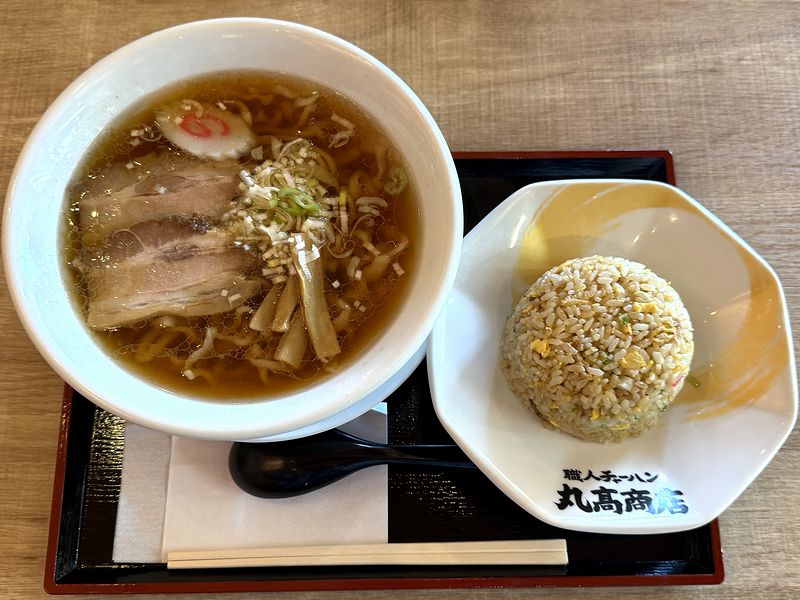 それで私がいただいたのが、喜多方ラーメンと半チャーハンのセットである、Aセット。今どき、いわゆる半チャンラーメンをメニューに残しているのは、老舗のラーメン店や中華料理店だけだと思いきや、こういうお店にあるのが面白いですし、お店のウリを同時にいただけるのも良いかな、と。