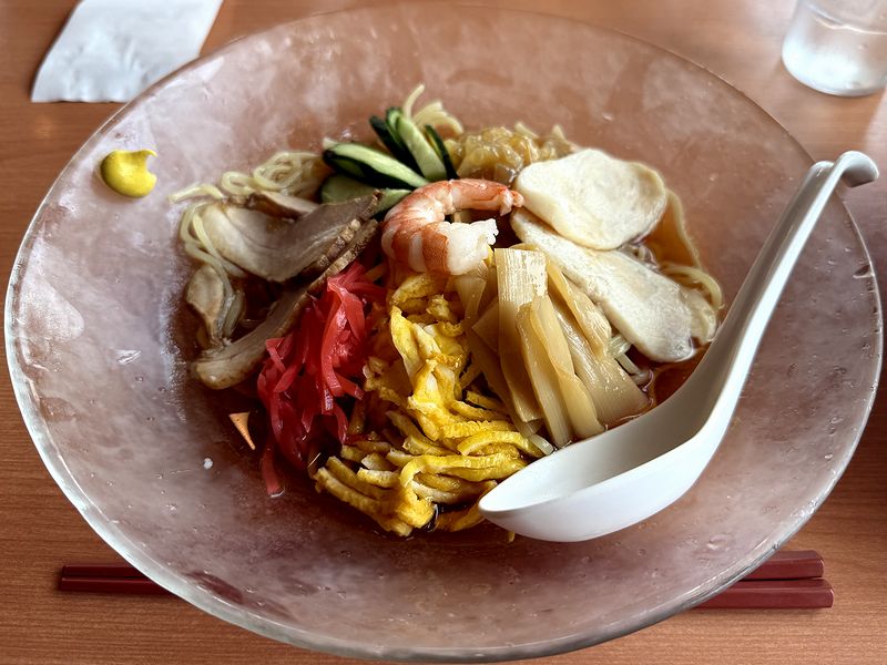 個人的に、夏というか暑くなってくると食べたくなるのが、冷やし中華。でも、猛烈に好きというわけでもない(まあまあ大好き、くらい)ので、目の色変えてお店を探すわけでもなく、今年も、食べようと思ってある店にお伺いしたら始まってなかったとか、次に食べようと思って別の店に向かうも急に別の品が食べたくなって食べずじまいだったりとか、今度こそと思ってまた別の店に行くも店員さんがあまりにも駄目すぎて注文というか着席前に出てきてしまったりとか何度かやっていたら、もう7月。いい加減食べたい欲求が溜まりに溜まっていたし、今月入れてあと2ヶ月くらいしか食べるチャンスがなくなっしまうしなので、この日、一人でこちらのお店まで。