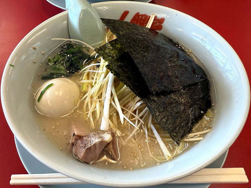 あとは、いつものとおり、ニンニクをレンゲの上に投下してスープで溶き全体に振り掛け、半ライスには豆板醤を匙一杯分混ぜ合わせ、ネギと海苔をライスに一部移植してから、麺を啜り、スープを啜り、コロチャーや味玉は約半分はそのまま、残りはライスと共にいただきますが、途中からコショウを多めに振って味変したところ、これが、もう。より味が決まったような気がしました。