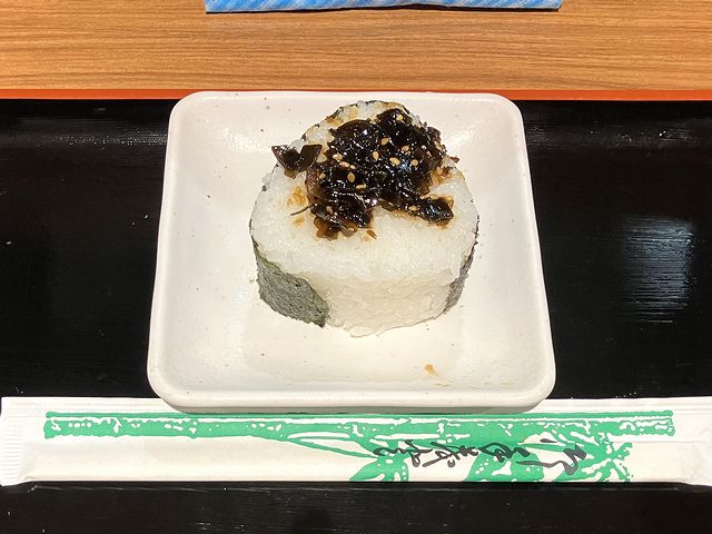 こちらは、一緒にいただいた品。型抜きご飯の上に具材が載ったタイプですが、その具材、昆布の佃煮が、関西っぽい味付け。関東だと、最初に濃い口醤油がガツンとくるところ、こちらのは昆布の風味と甘みが来るというか。