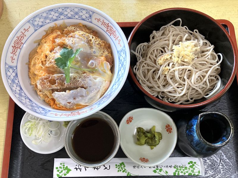 それでこの日は、朝から色々あってストレスを満腹で退治したくなったということもあり、以前いただいた親子丼とそばのセットよりも更にガッツリいけそうな、かつ丼とそばのセットに。