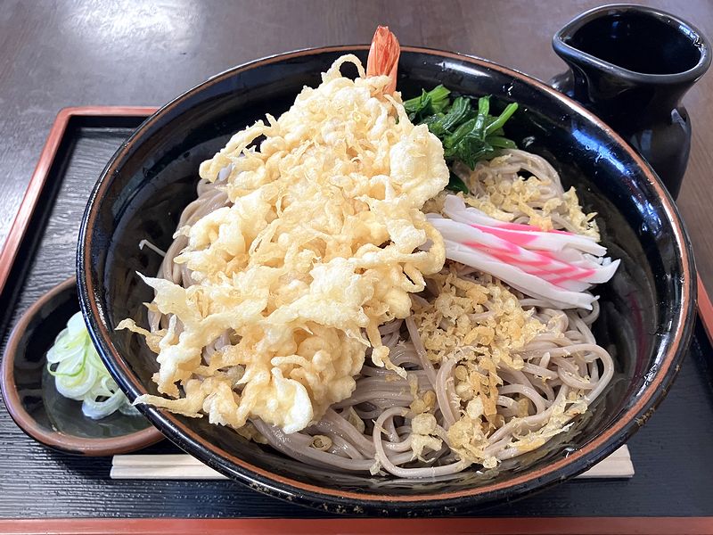 この日は12月にしては暖かい気温だったので、私は冷しえび天ぷらそばを大盛りで。