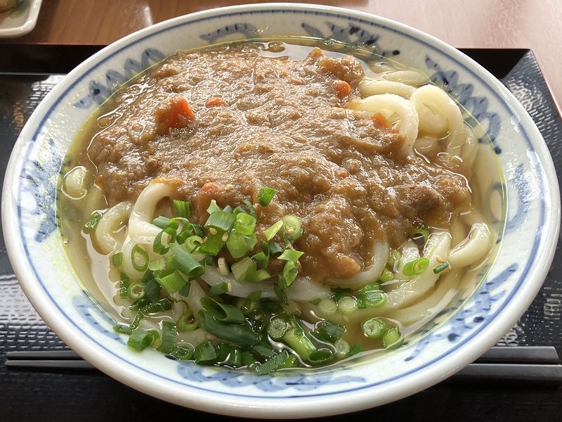 またツユというかルーは、とても良く煮込まれた具材の、肉はホロホロになり、野菜がドロドロに溶けた感のあるもので、辛みはカレーうどんらしいちょい辛程度。スパイス感うんぬんというよりも、小麦粉とカレー粉から作ったような懐かしい味わいですね。で、これならご飯とも合うのではと思いきや、出汁というかかけつゆと合わさることによって、逆にご飯よりもうどんに合う印象です。