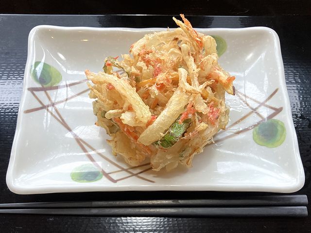 そんなわけなので、残ったツユに入れようとしていたご飯が余るのですが、今回は揚げたてのかき揚げがあるじゃないですか。ちなみにタネは、玉ネギと長ネギ、ニンジン、そしてあとアミエビでしょうか。揚げたてだけ有って香ばしく、さっくり軽めの食感が良いですね。