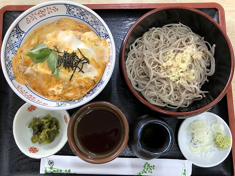 それで今回は、これまで食べたことが無いメニューにしようと思ったのですが、同行者が丼物とそばのセットが食べたいと。私もこちらで丼物は食べたことが無かったので、それに乗っかることに。それにしても、フルサイズの親子丼と盛りそばがセットで1,000円を切っているって、今時有り難い限りです。
