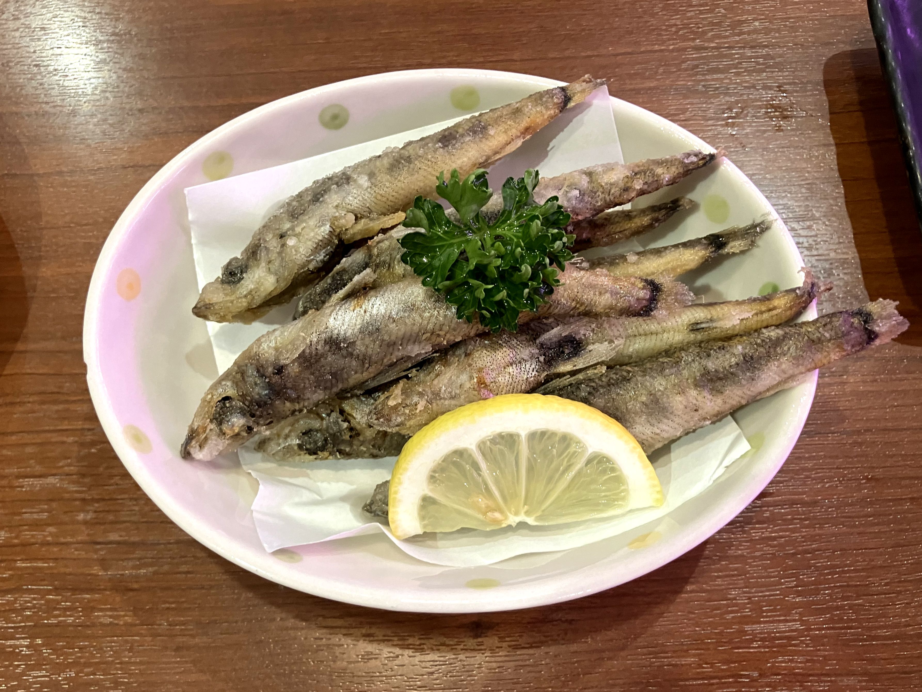 で、こちらの唐揚げは頭ごと揚がっていますが、骨は柔らかく丸ごと食べることが。ホクホクした身はクセのない旨味があり、味付けも最小限というか、魚本来の味を生かす程度だったのも良かったです。