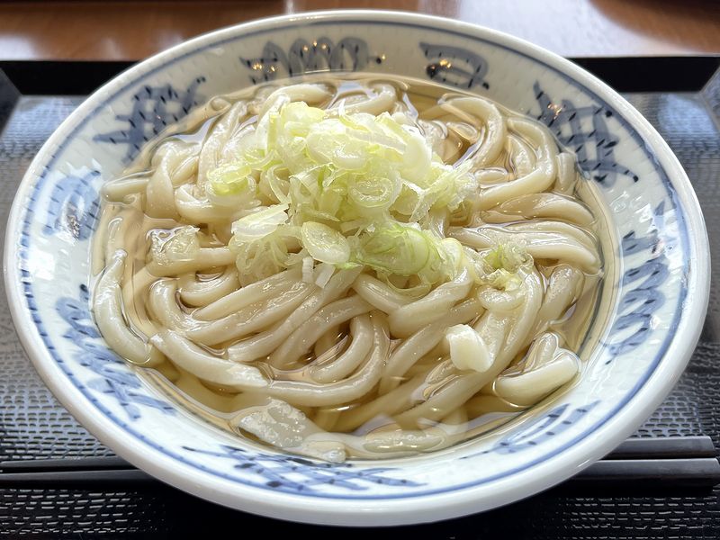 とりあえずあいている席に移動後、まずは冷たいかけうどんから。