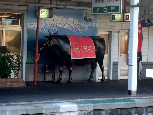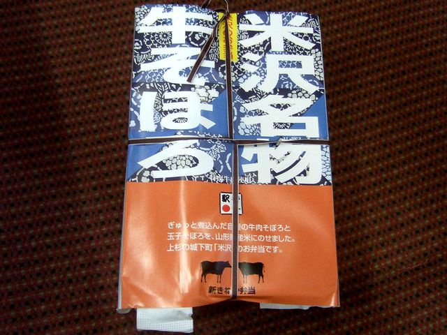 それで米沢駅には駅弁の業者さんが2社入っていて、両方とも牛肉を使った弁当を中心に、1番線ホームにある売店で覇を競っているのですが、今回は、新きねやさんのほうで購入しました。