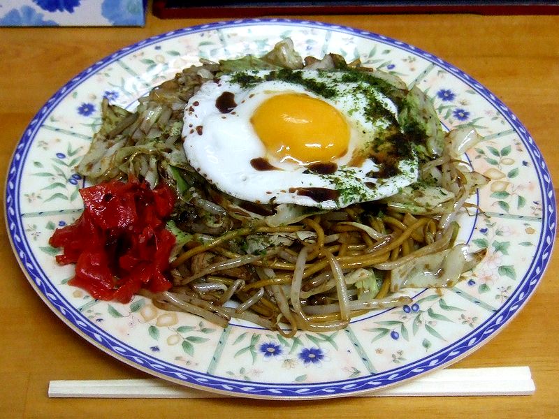 そんなわけで、まずは横手焼きそばからなんですが、まずはソースがたっぷりというか、かなりジューシーなくらいに絡んでいたのにちょっと驚きました。でも、いざいただいてみると、そのソースに甘味があって、これが実に美味しいんですよね。麺は太めでモチっとした食感で、具のお肉は当地では多い挽肉ではなくバラ肉で、野菜はキャベツとモヤシ。そしてそれらを炒める時には、表面に掛かっている甘口のとは別の辛口のソースを使っているとのことで、麺と具に染みたスパイシーなそれが、食べ進む打ちに表面の甘口のソースと混ざり合って、これもまた。そして最後はお約束の、目玉焼きの黄身を崩していただけば、もう、トロトロでございます。