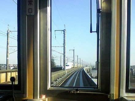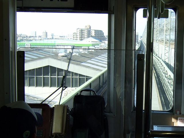 運転手さんが指差点呼して発車後、すぐ右に急カーブしビルに張り付いて走ったと思ったら(このあたりの景色が個人的には一番感動しました)、ほどなくして新幹線の高架線西側に張り付いて走行。下り列車の場合、ここから終点の内宿まで、ほとんどの区間が高架線西側に沿って走るので、進行方向右側の車窓は高架線に遮られ(というか、見えるのは新幹線)、景色を見られるのは進行方向左側の窓からとなります。