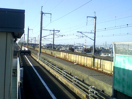 北足立郡伊奈町に入ったところで丸山。駅の手前で一度高架線の横から下に入った所に駅があります。ここで運転手が交替しました。また、この丸山には車両基地もあるそうですね。