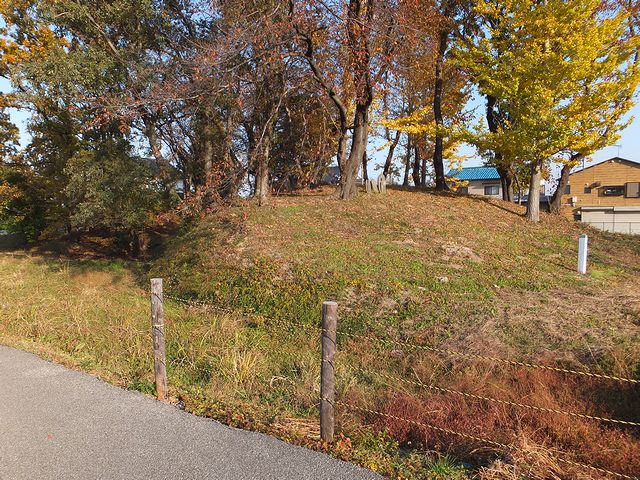 古墳群の南端にあるうちの1つが、奥の山古墳。台形の二重周堀を持つ全長66mの前方後円墳で、築造は6世紀中頃から後半にかけてと考えられています。また堀は水堀ではなく空堀だったとのこと。