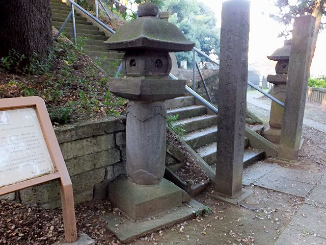 お社のある頂上部に上る階段の登り口にある2基の石灯籠が、元禄10年(1697年)に当社の氏子が祈願成就を記念して奉納した万葉灯籠。万葉集に載る、当地に関する歌が一首ずつ記載されているので万葉灯籠と呼ばれているそうです。