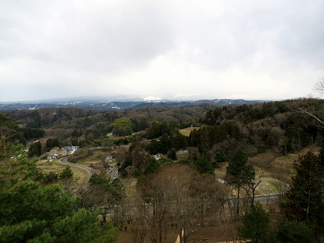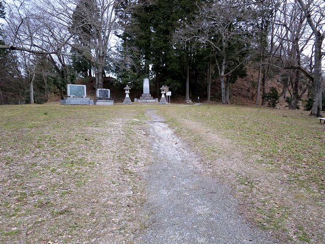山頂部と言うこともあって、本丸はさほど広くないのですが、天守台、西櫓台、東櫓台と3箇所物櫓が存在したようで。また、天守台の脇には、戊辰戦争の折に自刃した城代の丹羽和左衛門と勘定奉行の安部井又之丞の供養費が建立されているのですが、壮絶な最期を遂げた丹羽さんの具足 については、後述する二本松市歴史資料館で見ることが出来ます。それにしても、この日は天気が悪くて、ここから安達太良山を望むことが出来なかったのは残念でした。