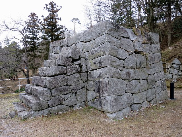 ですが、天正18年(1590年)に豊臣秀吉の奥州仕置に端を発した葛西大崎一揆の際、政宗の一揆への関与が疑われ、最終的に二本松は会津を領していた蒲生氏郷の所領となり城代が置かれました。で、その際、城域の拡大や穴太積みによる大石垣の普請が行われました。その後、安土桃山時代から江戸時代初期にかけ、会津の領主と共に城代もめまぐるしく替わったのですが、二本松市の公式ウェブサイトに載っているだけでも、会津領主が蒲生氏郷の頃に3名、上杉景勝の頃に2名、蒲生秀行(氏郷の子)とその子忠郷の頃に6名もの名が見えます。そして忠郷が若くして没した後、一旦幕府領を挟んで1627年(寛永4年)、加藤嘉明が会津藩主に封ぜられますが、その際、娘婿の松下重綱が二本松城主となって二本松藩が立藩。嘉明の与力大名となります。しかし、同年、重綱は早々に亡くなってしまったので嫡子の長綱が家督を継ぐも若年を理由に翌年三春に移封。入れ替わりに嘉明の三男である明利が城主となりますが、寛永18年(1641年)に改易となり、その後再び幕府領となりました。