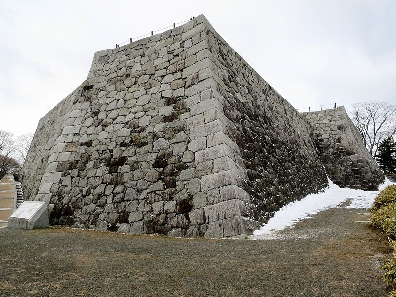 二本松城の正門に当たるのがこの箕輪門。戊辰戦争の際に焼け落ちてしまったのですが、昭和57年に復元されました。また、この門から続くのは三の丸の高石垣で、もともと加藤氏時代(寛永4~20年)に築造されたものだそうです。それでここから三の丸へと登る為には、もう一つ虎口を通る必要があり、正門だけあってそれだけ厳重に防御されていたことを伺わせます。