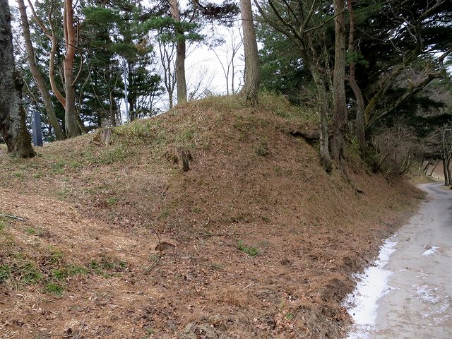 それでいきなりですが、土塁と堀切。それと、この近くにあるL字型の堀切も見たのですが、撮ったはずの写真は良くわからぬ物が写っていたというか。で、とりあえず城跡探訪はここで切り上げ、日本100名城スタンプラリーのスタンプを貰いに。しかし、その道すがらにあった旧二本松藩戒石銘碑を素っ飛ばしてしまったのは、後から思えば何て勿体ないことをしたというか。