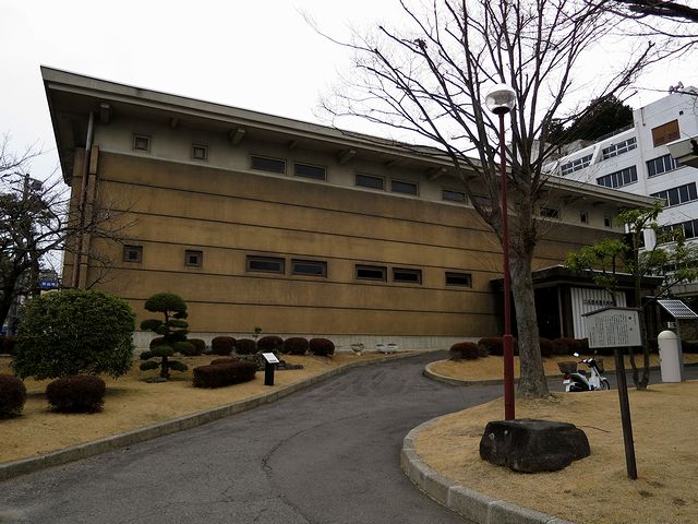 そして最後は、日本100名城スタンプラリーのスタンプが置いてある、二本松市歴史資料館。周辺の地形地物などから、ここもかつては城内だった雰囲気がありますね。ちなみに、展示物は結構見応えがありました。それと、その建物の前には、現在の東京都千代田区永田町二丁目にあった二本松藩丹羽家上屋敷跡から出土した石垣石材が展示してありました。