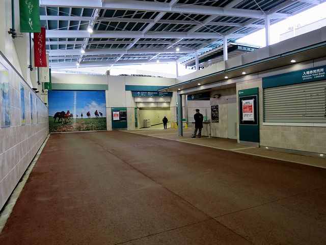 東口から入り、長い地下通路を進むと、入場券発売所が。ちなみに、本日は場外馬券発売所なので入場は無料です。