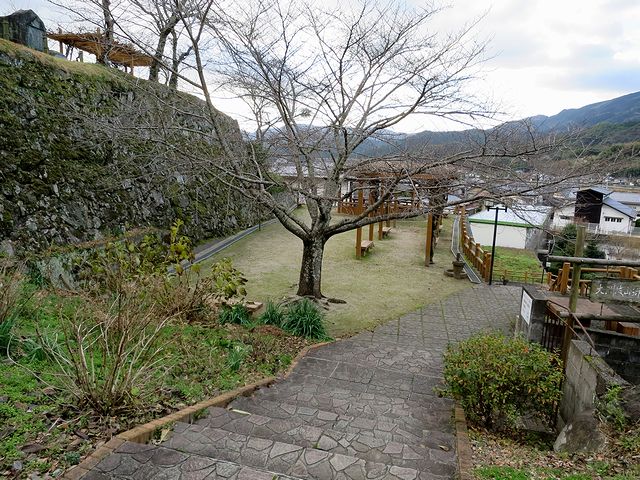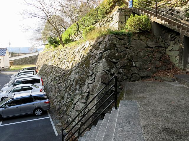 その他点在する歴史スポットにも惹かれたのですが、それらは再訪時の楽しみに取っておくことにして、いよいよメインの城郭中心部がある城山へ。それで市民会館裏手の階段から入ることにします。
