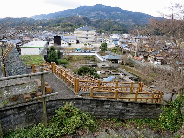 鎌倉時代末期の元弘元年(1331年)、伊予国の守護に任ぜられた宇都宮豊房が、当時は大津と呼ばれた当地を流れる肱川と久米川の合流点付近にある地蔵ヶ岳に城を築いたのが始まりとされ、当時はその名前を取って地蔵ヶ岳城と呼ばれたそうで。ちなみに、肱(ひじ)川は、築城の際に人柱となった娘の名前である「おひじ」から取られたという言い伝えがあるそうで。